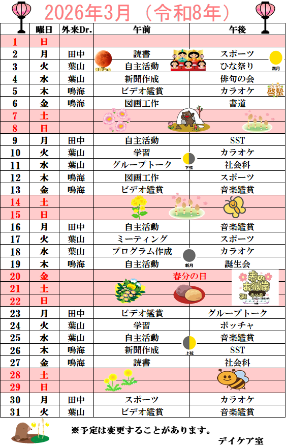 2026年3月 デイケアプログラム